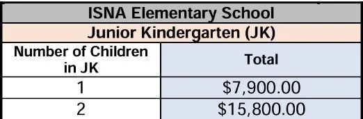 ** Note these prices reflect the ISNA school in Canada and represent Canadian dollars, for the year 2022 and 2023. Source