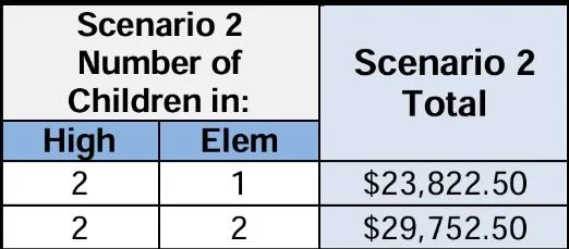 And if you have 4 children, 2 in highschool and 2 in elementary here is ISNA’s combined scenario: